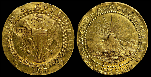 Ограниченный тираж 15-долларовых золотых дублонов вышел в Америке в 1787 году. Откуда такое название? Да просто их вес был равен весу испанских дублонов, а инициалы гравировки ЕВ обозначали имя создателя – Ефрема Брашера. Эти монеты регулярно не использовались по назначению, так как больше были авторским ваянием. Каждый экземпляр чеканили по индивидуальному образцу. В изящных деньгах золота всего один грамм, но в 2011 году на аукционе дублон Брашера неизвестный нумизмат выкупил за 7 400 000 $.